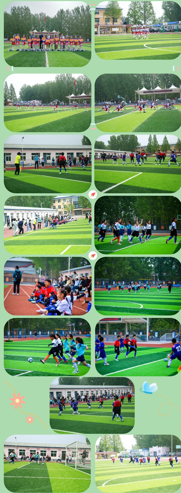 日坛实验学校啦啦操社团以活力四射的表演点燃现场氛围,随后足球教练组织学生进行热身并讲解比赛规则。友谊赛分为女队与男队两场,采用8人制赛制,上下半场各20分钟。赛场上,小球员们奋力拼搏、默契配合;场边家长们的加油声此起彼伏,亲子互动温馨满溢。
